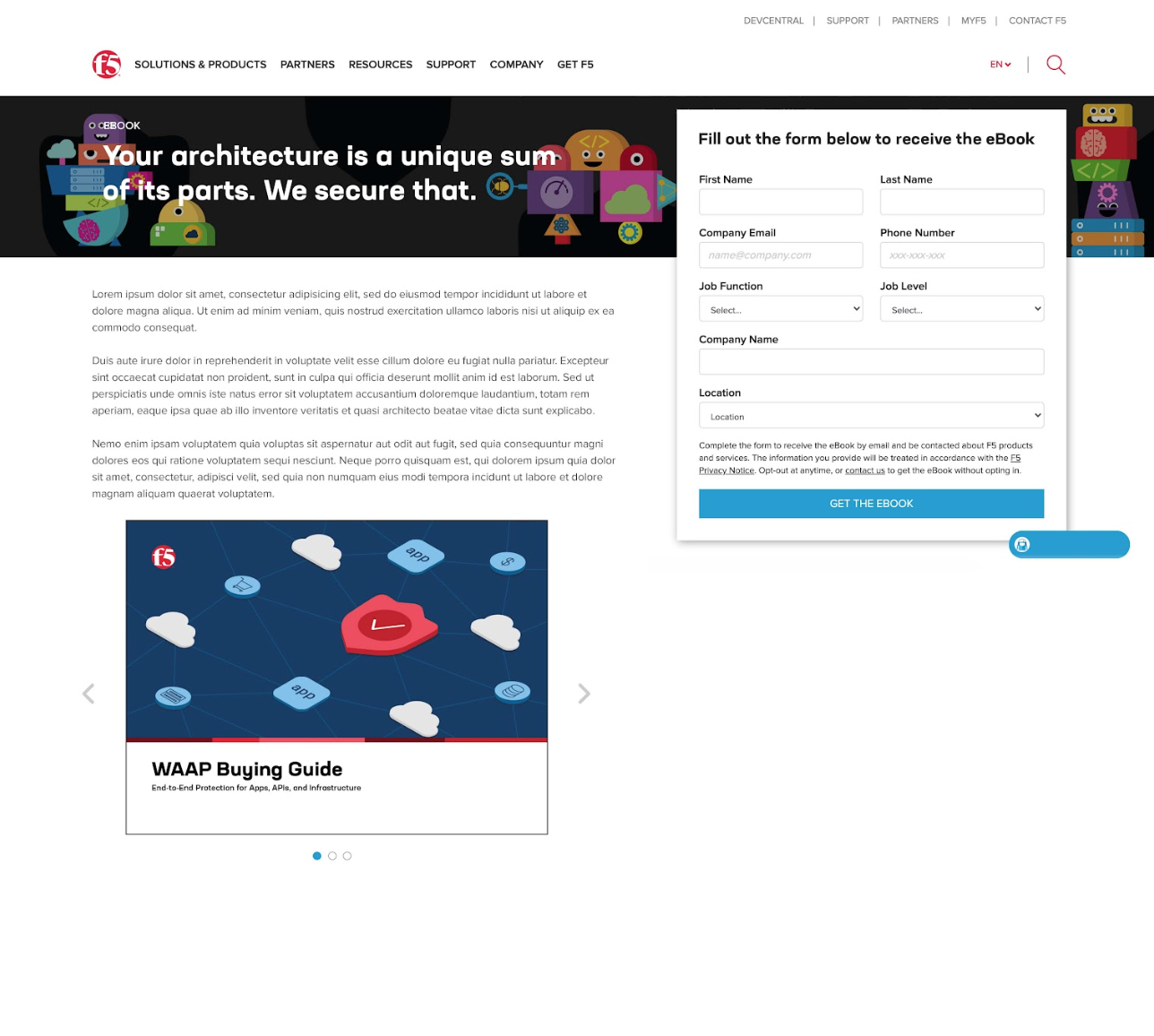 The team and I created visuals for a campaign about F5 security. We worked closely with our content writers and security matter experts to ensure that our visuals would speak to the audience.